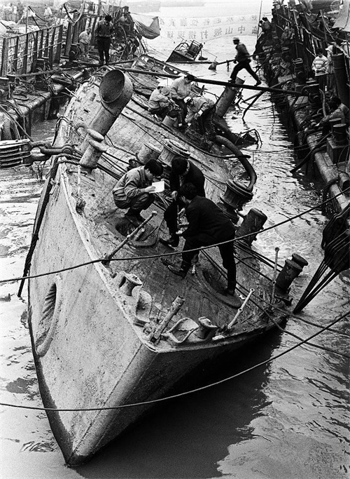 【“中山舰”被日本飞机击沉】1938年10月24日,中山舰在武汉参加抗日的战斗中,不幸被日本飞机炸沉。在其25年的服役中,先后经历了护法运动、孙中山广州蒙难、中山舰事件、武汉保卫战四大历史事件,它记载着孙中山先生经历磨难、矢志救国的坎坷历程,和孙中山先生作为中国民主革命的先行者的功绩。体现了中华民族不畏强暴、抗击侵略、英勇献身的伟大爱国主义精神。图为59年后,中山舰被打捞出水。周国强/视觉中国