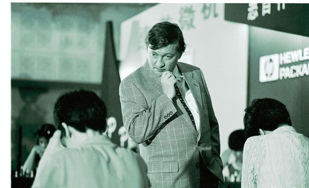 【中国棋院在京成立】1991年10月24日,筹备已久的中国棋院在京正式成立。该院作为中国围棋、象棋和国际象棋的最高领导机构,直属于国家体委。图为俄罗斯特级国际象棋大师卡尔波夫,在中国棋院与中国许昱华、宁春红、秦侃滢、王蕾、王频、诸宸等6位国际象棋手对弈。老北/视觉中国