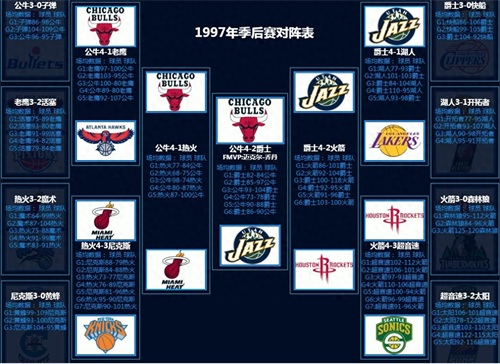 NBA九十年代末,西部的犹他爵士绝对是炙手可热的球队,爵士也是一支老牌球队了,但一直未能有过NBA总决赛的经验,到80年代中后期来了“犹他双煞”后才变成一只强队,1997年是球队有史以来第一次闯入NBA总决赛,实力是有了,或许最欠缺的就是决赛经验。卡尔.马龙以其在篮下的实力和进攻中的灵敏快速成为NBA中最出色的前锋之一,经历了十几个赛季的磨炼后,他拿下了1996-1997的常规赛“最有价值球员”,另一个球星约翰.斯托克顿则是以他下三路出色的判断和精准的传球,让自己成为NBA历史上不可多得的“推断王”和“助攻王”,这两个纪录一直是他保持的。