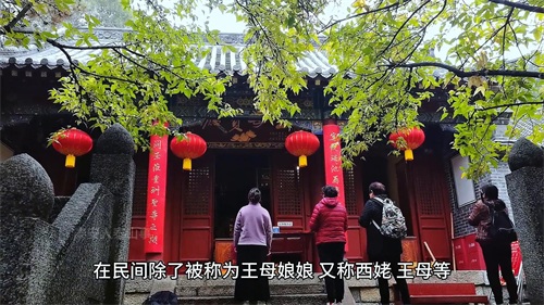 4. 王母殿:正中央供奉西王母,在民间除了被称为王母娘娘,又称西姥、王母等,主管生死、婚姻、生育等。殿前楹联:“宴设瑶池,再庆仙龄之会”,樽开玉液,重酬圣寿之期,描绘了蟠桃盛会,众仙为王母庆寿的场景。