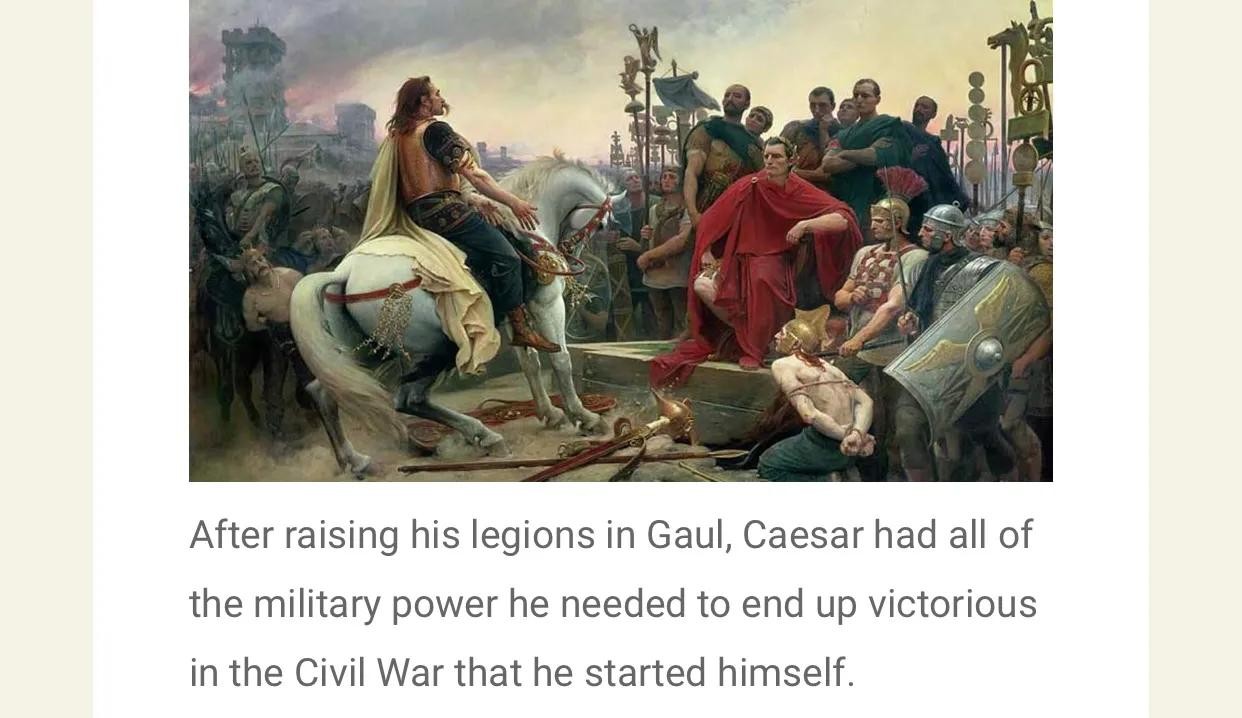 在高卢组建他的军团后,凯撒拥有了在他自己发起的内战中取得胜利所需的全部军事力量。