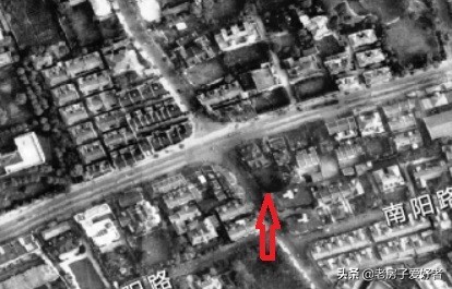 1948年航拍图上西康路140号洋房影像(红色箭头所指)