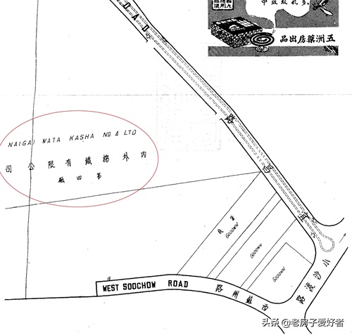 1938年版《上海市行号路图录》上标示的内外棉四厂(红色圈内)