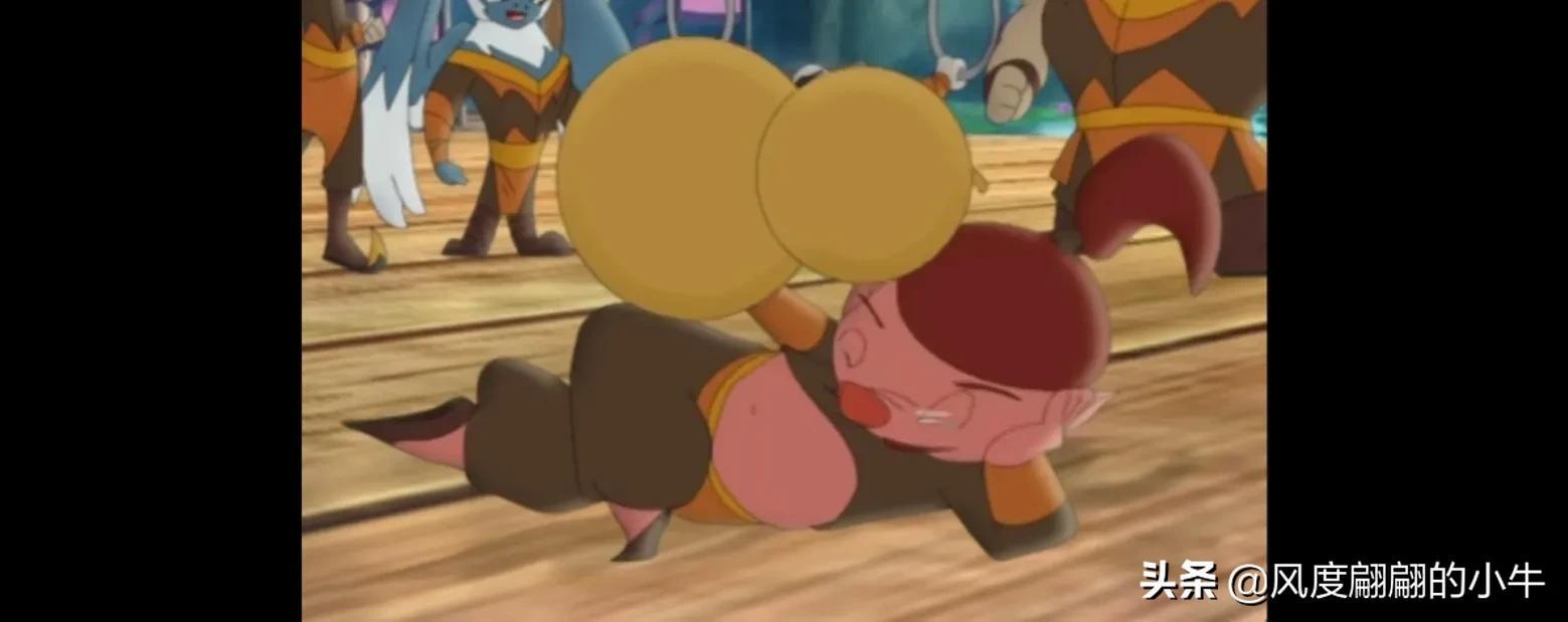 被自己的炸弹炸飞,海洋之心的碎片也被炸飞,砸到了虹猫头上。