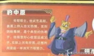 斧帮帮主。他武艺高超,表面上待人忠义热情,实则阴险毒辣,是个典型的伪君子。他假心假意收留逗威父子,实际上另有所图,还想利用逗逗一举消灭刀帮势力。