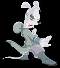 其通晓天文地理,脑子比较好使,善于做各种发明,他的一心只想完成自己的飞天梦想,希望飞行到痴迷,对别的事情不大感兴趣,飞天梦想背叛鼠族跟了三郎,最后悔悟,帮七侠一起消灭三郎。自己最后没有死,从此改邪归正。