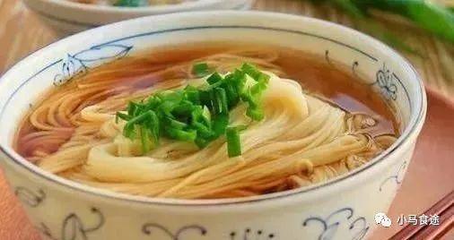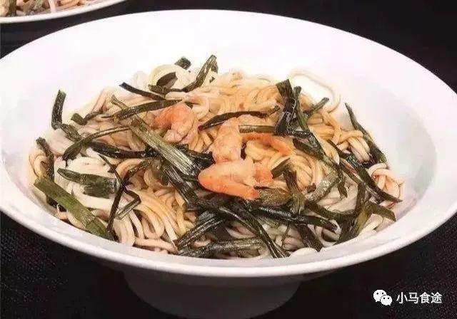 6.水烧开下入韭叶面条,煮2开,捞入碗内。