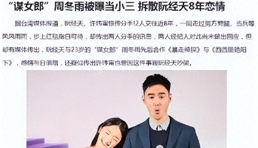 今天,我们就一起来揭露这个故事的真相吧!周冬雨和阮经天的绯闻曾经是娱乐圈的头条新闻,也是网友们最为关心的话题之一。然而,这个绯闻是否属实,却一直没有得到过证实。而在此期间,周冬雨的形象也受到了不小的影响。