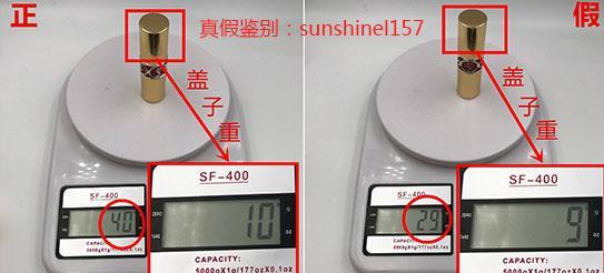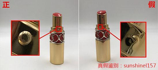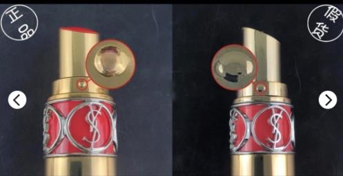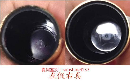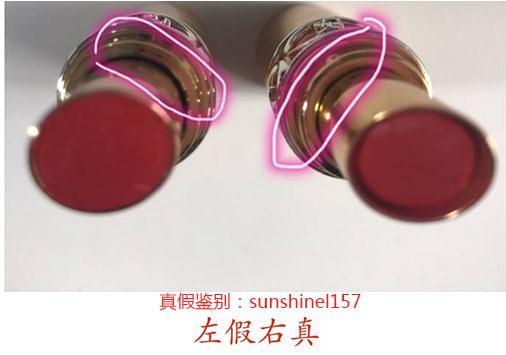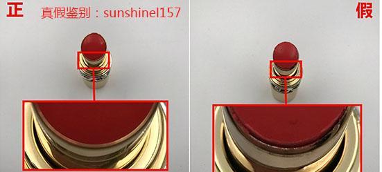 正品唇膏管卡扣处的小圆点凸起明显,假货唇膏管卡扣处小圆点弧度很大,不明显。