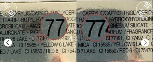 正品的字体是不太平整的,像是打了马赛克一样的触感。色号数字外面的框要粗一些,仿冒品的数字边缘则非常的光滑没有棱角,色号数字外面的框要浅一些。