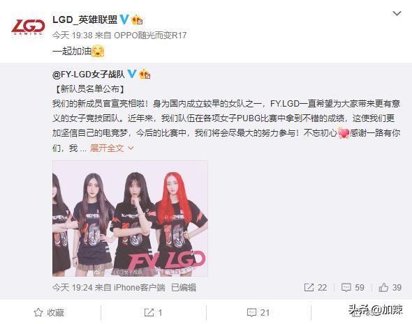 一直到今日LGD战队的官博帮忙做宣传,这才让这支女子战队再次浮出了水面。