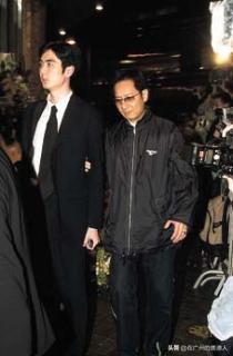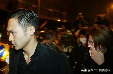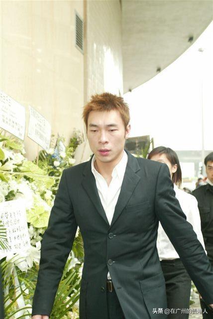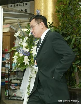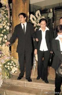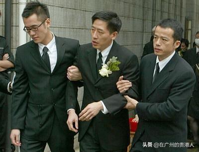 张国荣的好友唐先生在送哥哥的遗像走出灵堂,伤心过度,需要工作人员撑扶行走,满脸哀伤难以平复。