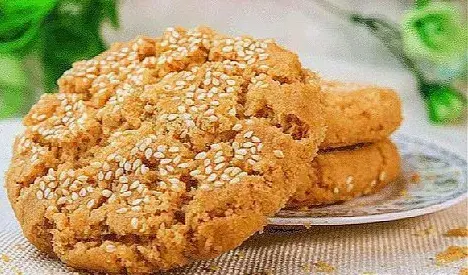食材准备:面粉200克,100克玉米面粉,小苏打3克,泡打粉3克,玉米油150克,白糖100克,鸡蛋,黑芝麻或者白芝麻适量。
