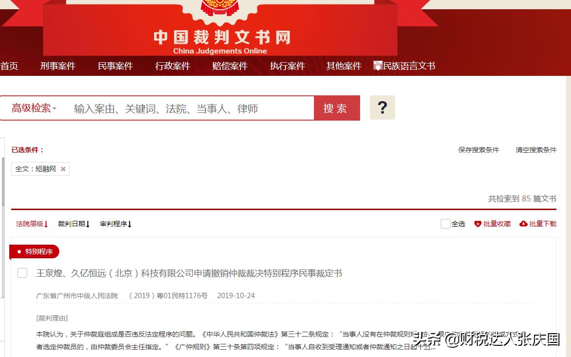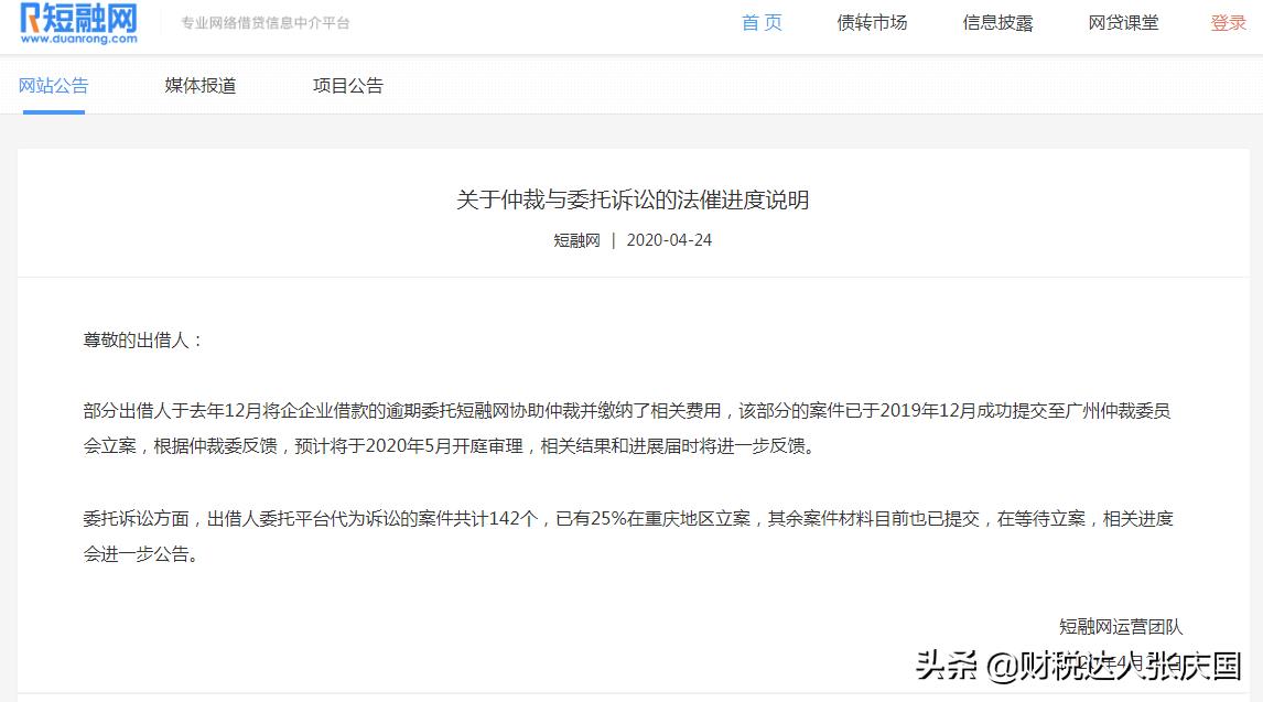 2019年6月24日,短融网发布说明,强烈建议持有逾期债权在30万元以上的出借人积极参与,在10万以上的踊跃参与,一起努力,依法追偿借款人。从中国裁判文书网查询到涉及短融网的诉讼有85宗。多数判决显示,2019年8月出借人将逾期债权无偿转让给久亿恒远公司,由久亿恒远公司代为追讨欠款或提起仲裁、诉讼,并将追讨所得扣除相关费用后分配给全体出借人。