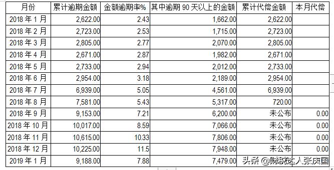 短融网披露的2018年1月至2019年1月间的逾期及代偿情况: