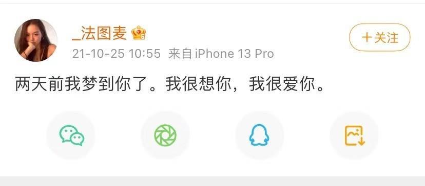 “两天前我梦到你了。我很想你,我很爱你”