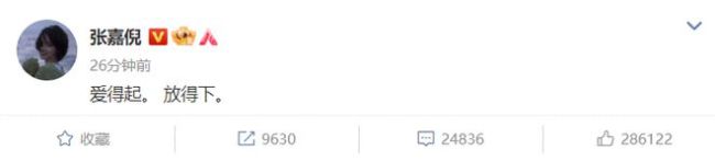 稍晚,张嘉倪发文:“爱得起,放得下”,疑似回应此事。