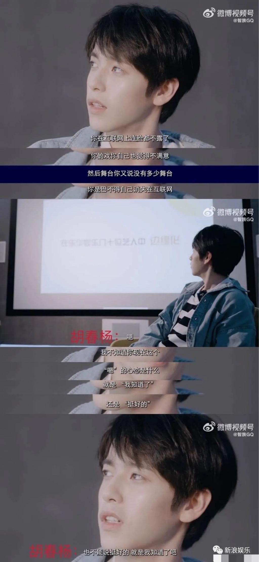 (↑《青春有你》出道组胡春杨在采访中表示自己不想营业)
