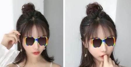 方脸的脸型虽然不是很受欢迎,但是方脸其实有不少发型也可以尝试的呢,而半丸子头就是其中一个,方脸的妹子扎起半丸子头能很自然的柔化脸部线条,两侧的发丝也可以修饰脸型,显得更加俏皮减龄有时尚感哦。