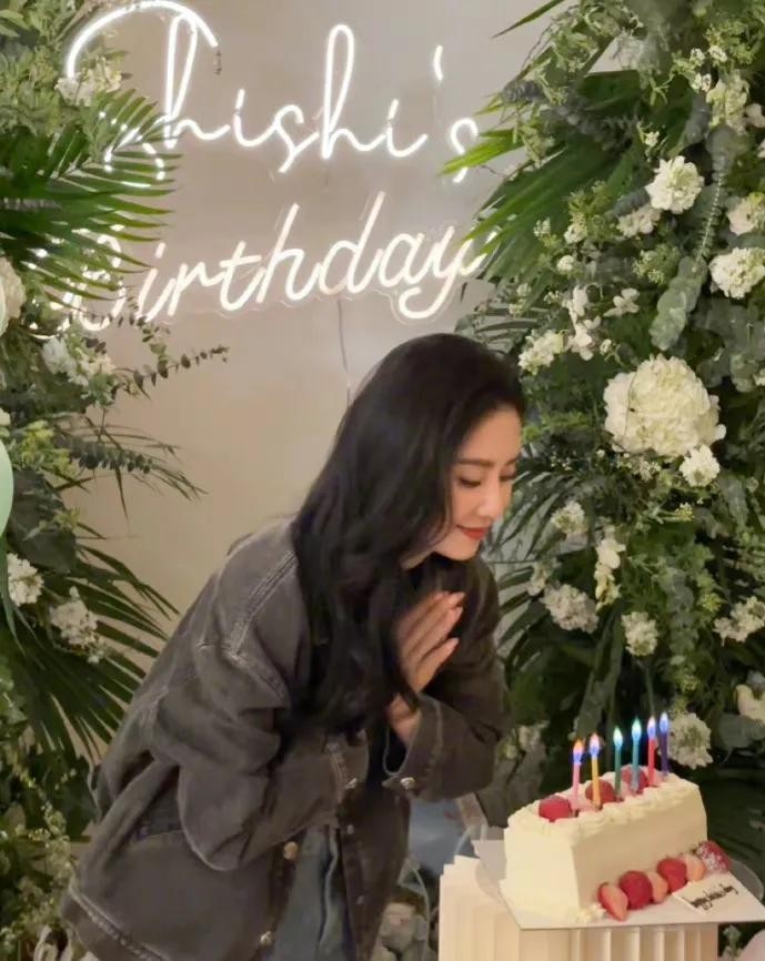 刘诗诗穿着牛仔外套,打扮随意淡然,她认真的切着蛋糕,接受身边好友的祝福,身后都是白色的鲜花,这一切非常岁月静好,温和从容。