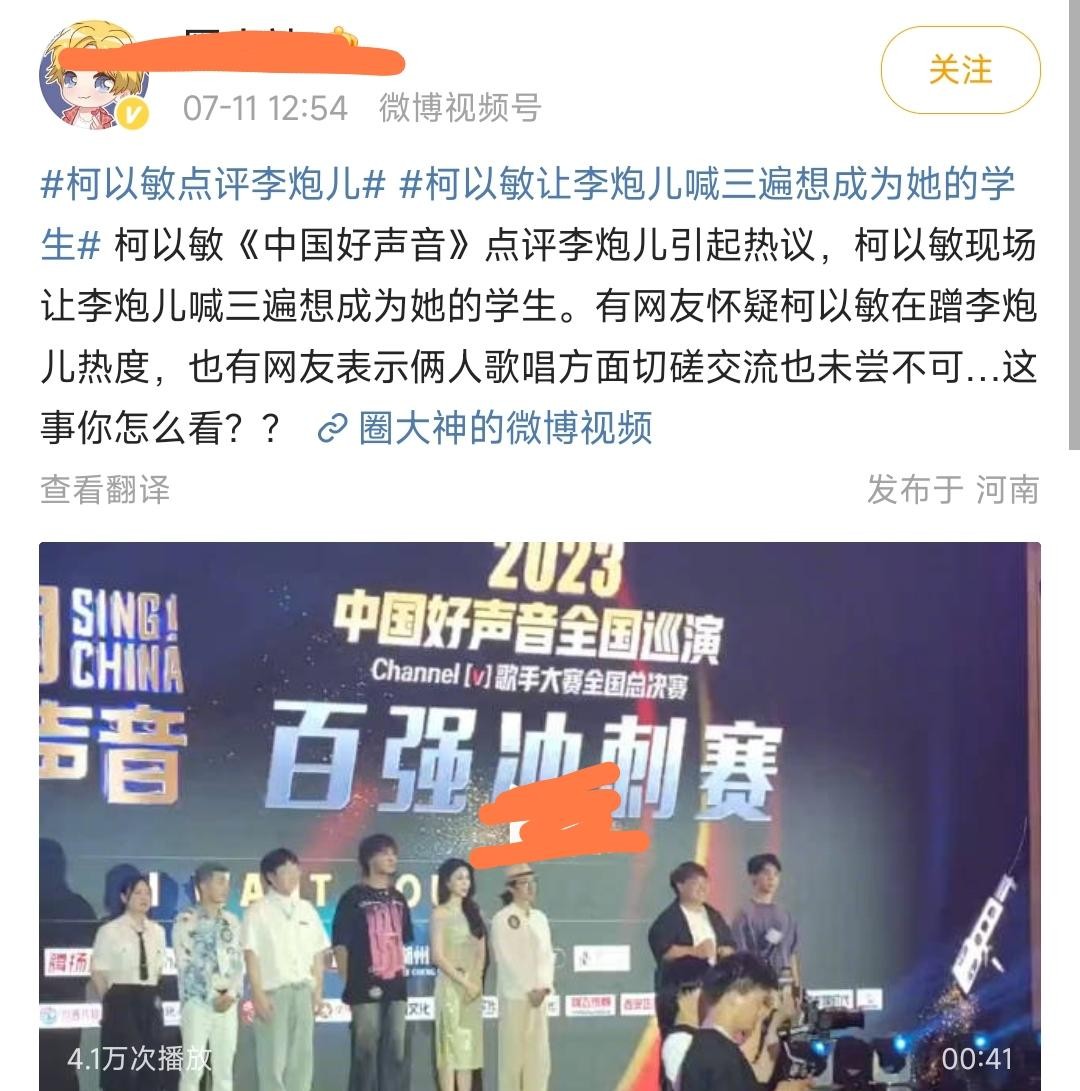 柯以敏点评中国好声音选手李炮儿,场收选手为徒,疑似蹭网红热度