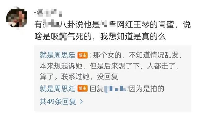 有网友十分好奇地询问周思廷打气去世一事是真是假,周思廷的账号也毫不留情地怒怼王琴乱不知道情况就乱发,他也联系过王琴,但并没有得到回复。