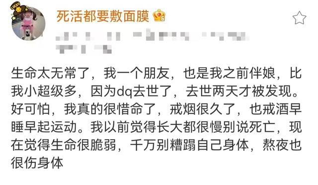 逝者已逝,无论如何都希望大家照顾好自己,身体不舒服也一定要尽快到医院检查,千万不要拖延,也愿周思廷能够一路走好!
