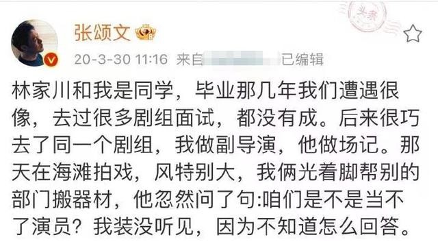 2 月 2 日,有网友晒出了一则在剧组拍摄现场偶遇张颂文的画面,走红后,他依旧保持着低调亲民的做派,引起网友围观。