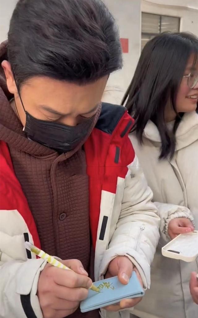 看见张颂文现身,一大批年轻的小姑娘赶忙跑到他的面前,将他围起来,并表达对他的喜爱。询问是否能签名后,张颂文亲切地点头回应,他态度非常好,停下脚步耐心地签名。临走时,还和小粉丝挥手告别。