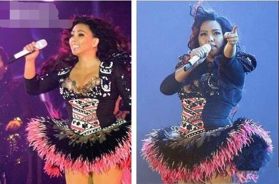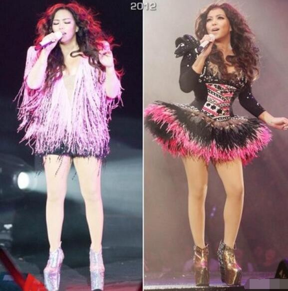 再看看阿妹的鞋子,也是瞎了……万年不变的超级高跟鞋,感觉有个25厘米吧