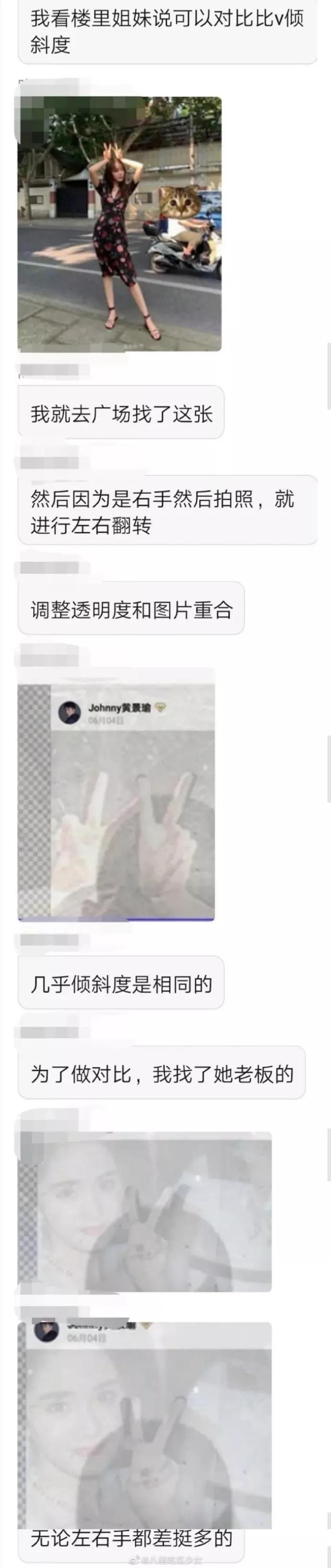 有网友通过和热巴以往的“比V”手势和这个图片中的影子“比V”手势进行对比,发现调整透明度和图片重合,这算是又给两人的恋情传闻增加了一些“佐料”。