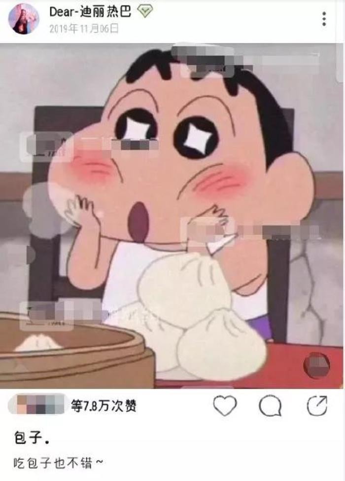 刚好热巴也在拍戏期间在个人社交平台上发了蜡笔小新吃包子的图,配文说:“吃包子也不错”。在网友看来,这根本就是已经见了家长的节奏。