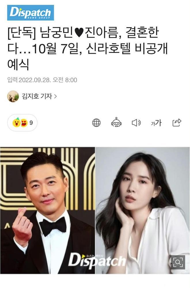 据韩媒报道,实力派男演员南宫珉与交往 7 年的女友模特兼演员陈雅凛结婚,于 10 月 7 日下午在新罗酒店举行非公开婚礼。由演员郑文成担任主持人,祝歌人选暂未确定。恭喜!
