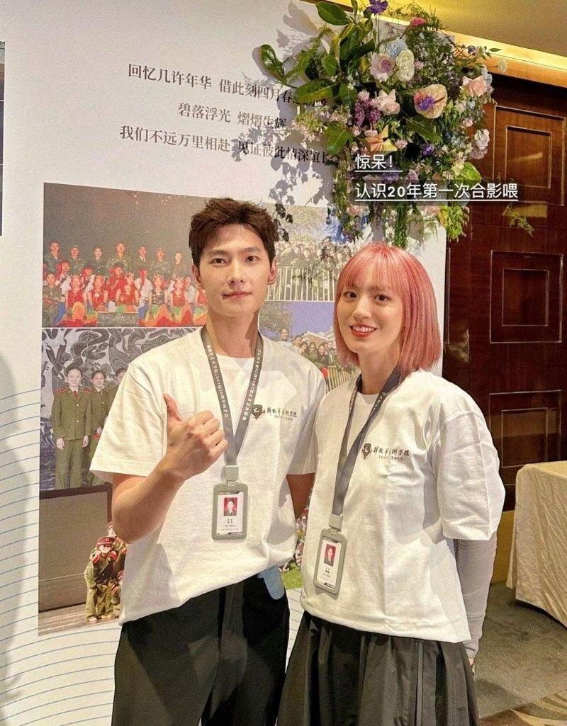 晒出和杨洋的合照,表示认识了20年居然才有第一张合照。