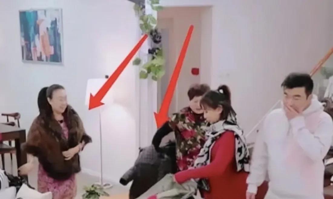 当何雯娜的父母前来看望女儿时,她的婆婆突然貂皮披肩穿了起来。