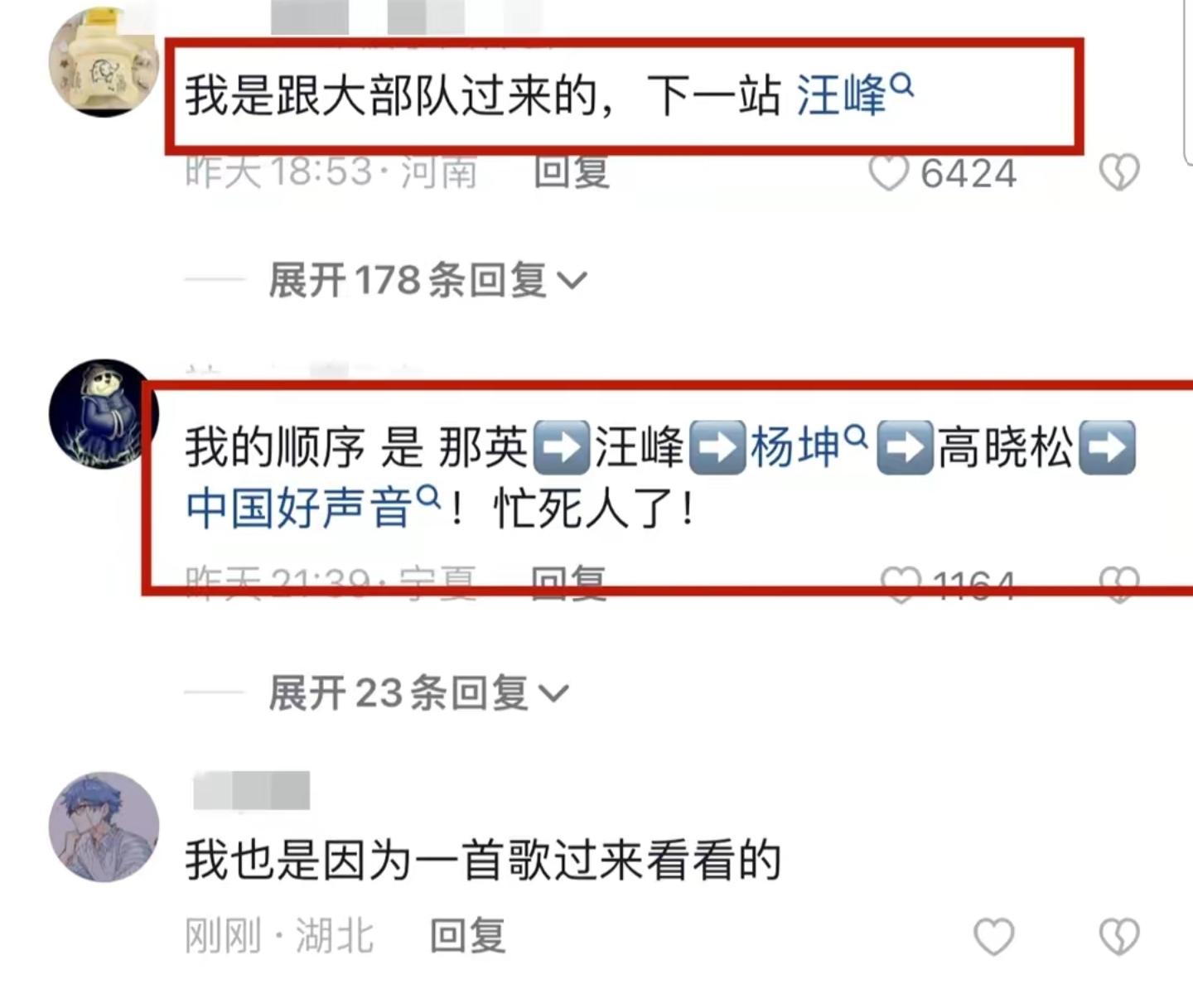 目前网上“公认”的答案有四位:那英、汪峰、高晓松、杨坤。