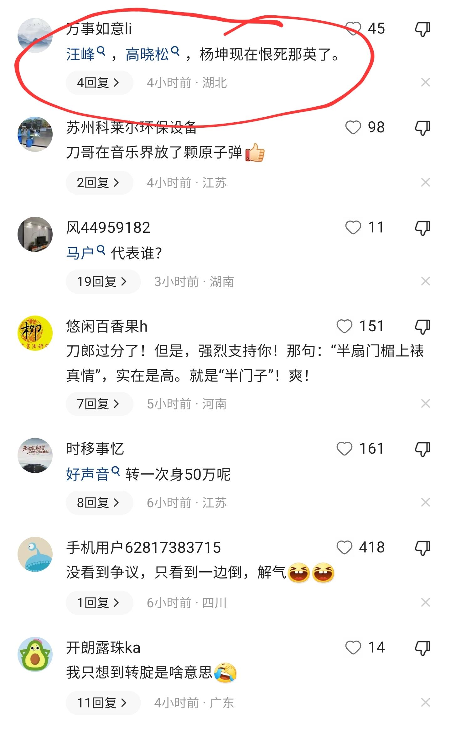 那么问题来了,刀郎专门写一首这样的歌曲,会是“内涵”谁呢?