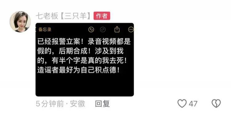 曝三只羊卢文庆录音门后续,七老板与卓仕琳报警:如果真的我去死