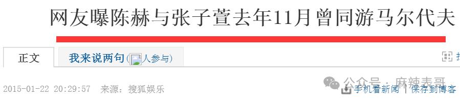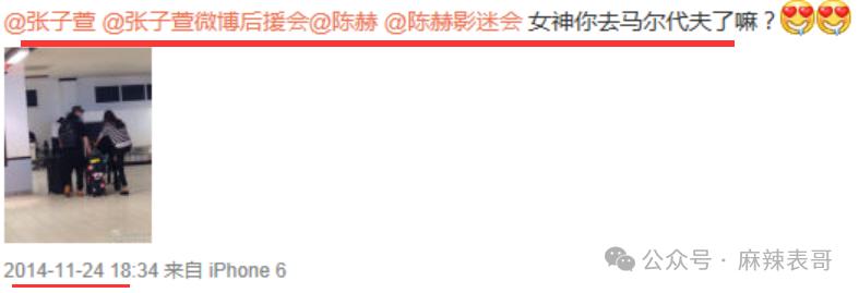 网友在2014年11月也拍到陈赫和张子萱同游马尔代夫。