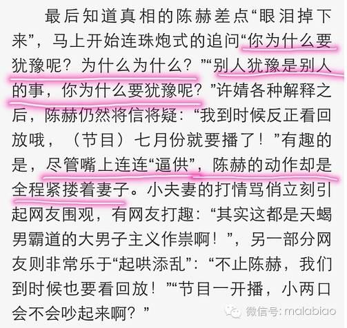 因为这个事情,陈赫后来是一直逼问许婧,你干什么要犹豫呢,你犹豫什么呢?