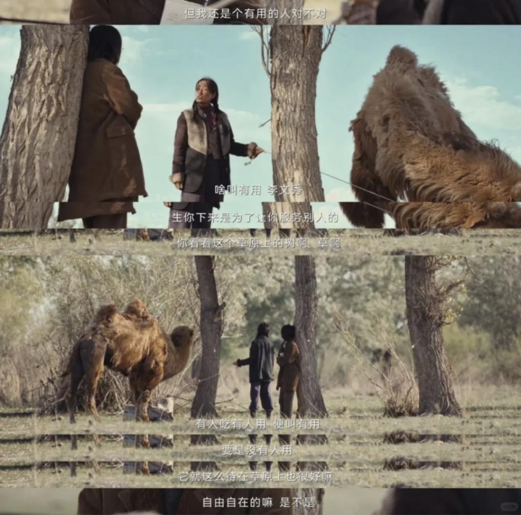 "啥叫有用李文秀,生你下来是为了服务别人的吗?你看看这个草原上的树啊草啊,有人吃有人用便叫有用,要是没有人用,它便这么待在草原上也很好嘛,自由自在的嘛。"