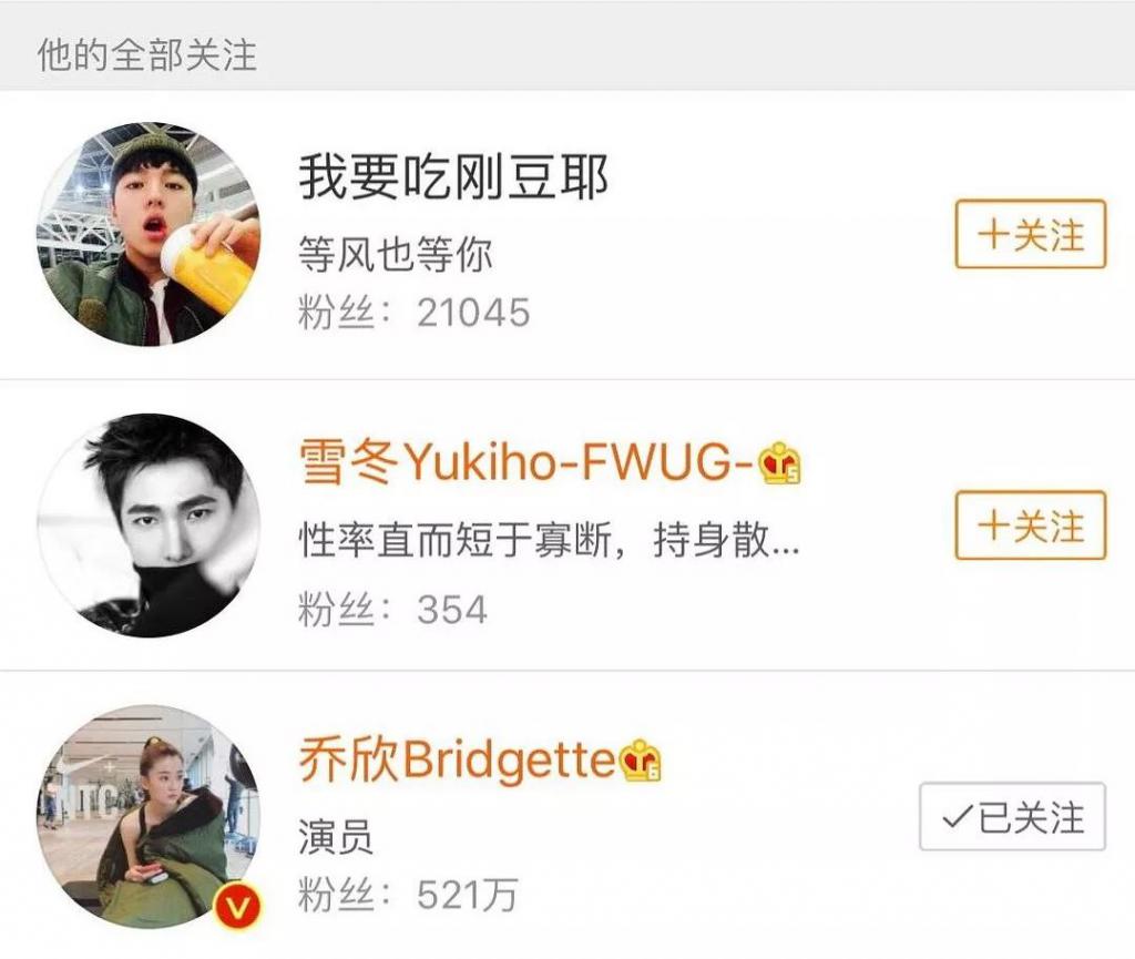 大家顺着ID名翻过去,发现这个小号参加过杨洋超话,且仅关注了乔欣一个女艺人。