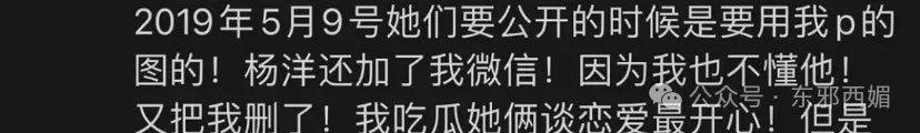 然后今天,乔欣的前助理出来发疯,爆了杨洋和前任们的料。虽然是老瓜,但相比前面两位,对我对大家的眼睛都好太多。