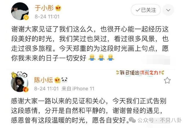 陈小纭这边呢,最广为人知的一段恋情就是和于小彤↓