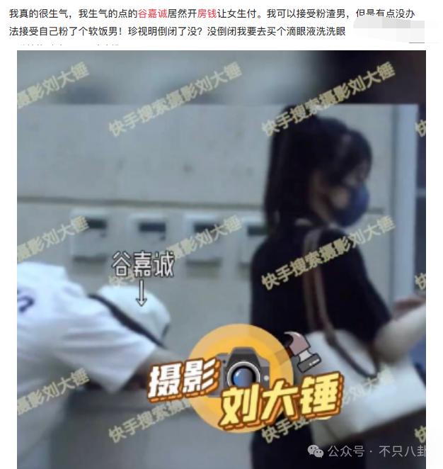 因为谷嘉诚情史比较复杂,之前还被前女友爆料私下向女方要钱买热搜买礼物,因此没少被吐槽抠门穷酸。