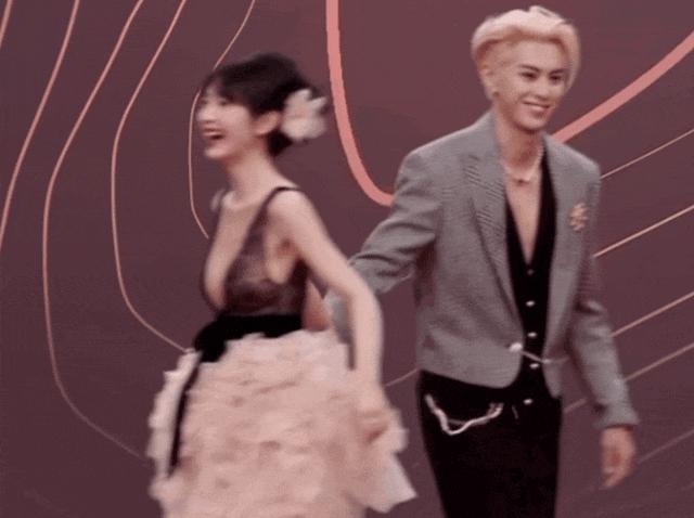 去年星光大赏红毯要求分i人e人走红毯时,田曦薇打算走i人路线,结果被王鹤棣拉回来,于是两人就挽着手一起走。