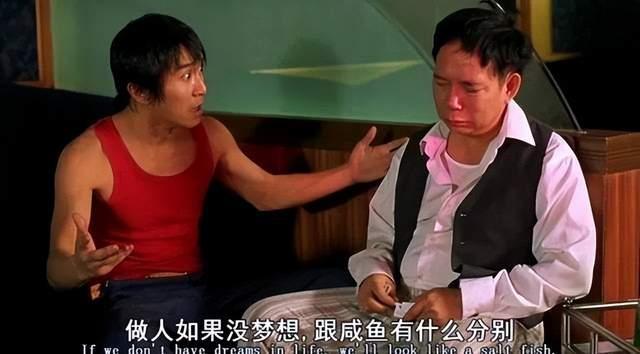 他和周星驰的对手戏都非常搞笑,两人贡献了电影里最经典的那句台词:做人如果没梦想,跟咸鱼有什么分别?