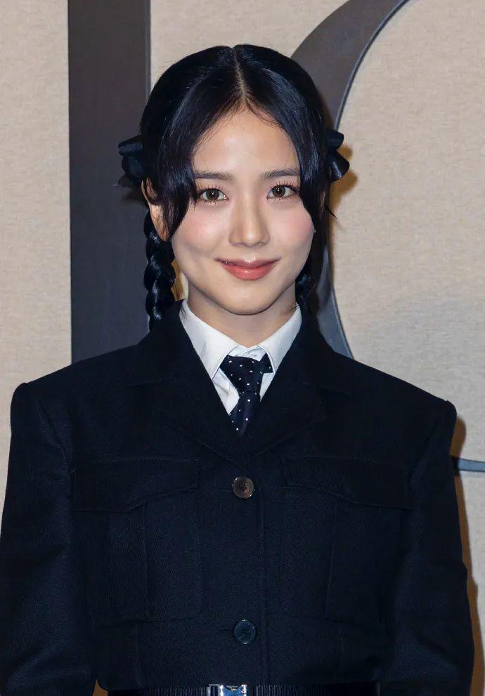 Dior亲闺女智秀当然不会缺席,这次的看秀look智秀选择了Dior 2024 早秋系列套装,以乖巧的蝴蝶结双马尾编发造型亮相,化身精致优雅的小公主。