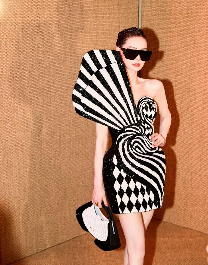 身为Balmain老朋友为的戚薇此次看秀选择了2024早秋火烈鸟刺绣礼服搭配同色系包袋、墨镜,甚至黑白渐变刘海短发点缀下,整个造型未来感十足,这么突破的造型放在她身上无比合适。