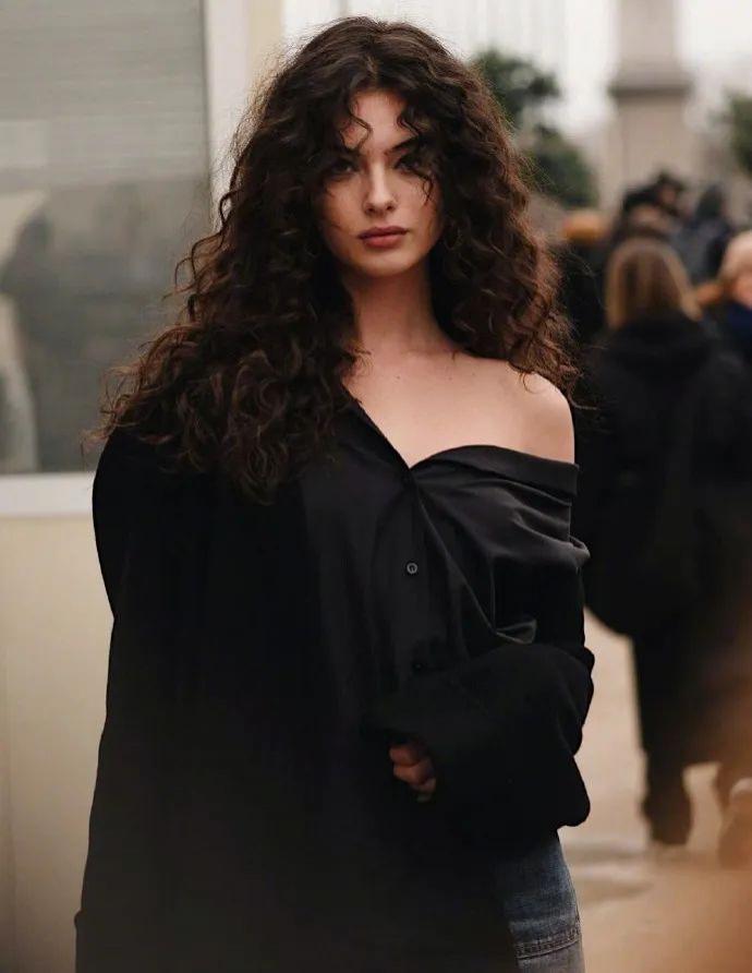 侧漏香肩,搭配一头蓬松的卷发,性感又慵懒,才19岁就已经出落得风情万种了,完美遗传了妈妈的美貌,美得浑然天成。